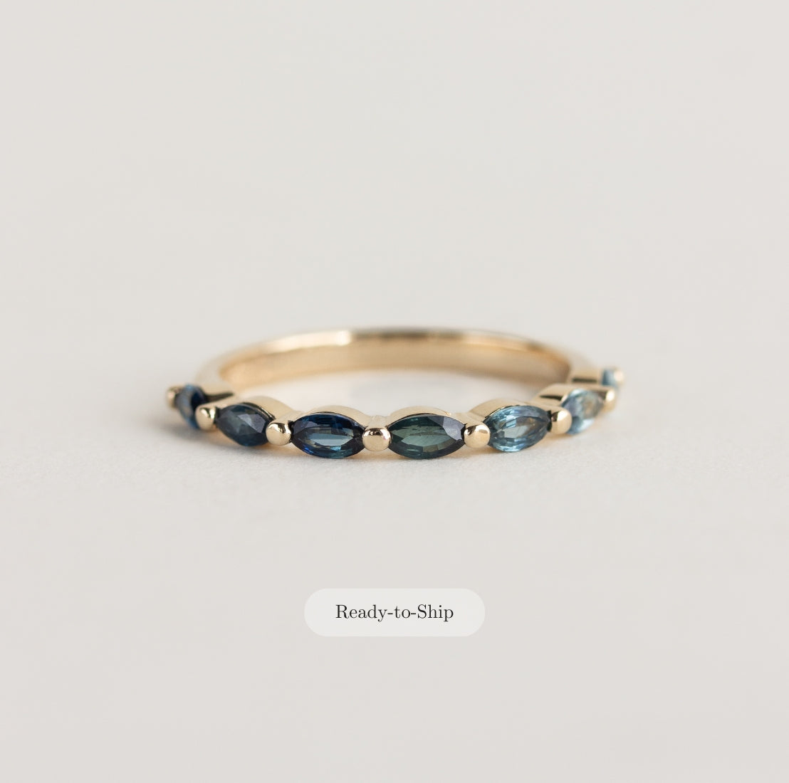 You can choose your centre stone, gold colour, and add an engraving for that added touch. Most rings are available in lab-grown or natural diamond, as well as many sapphire colours—just select your stone option in the product listing. Bands are available in 10K, 14K, and 18K yellow, rose, and white gold, and platinum as well.