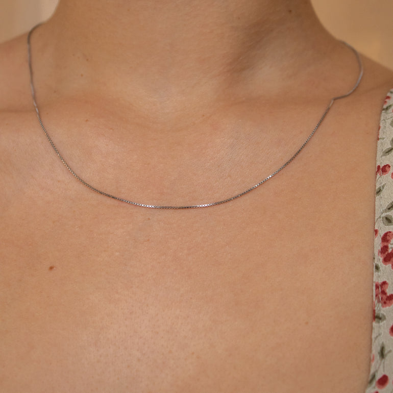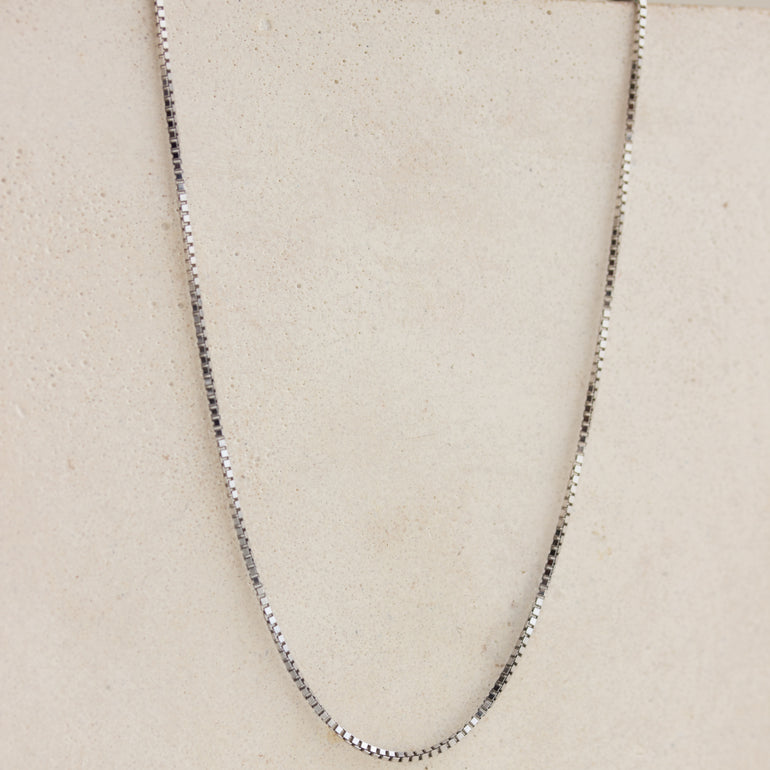 An easygoing box chain crafted in 14K white gold, a staple in any fine jewellery collection.