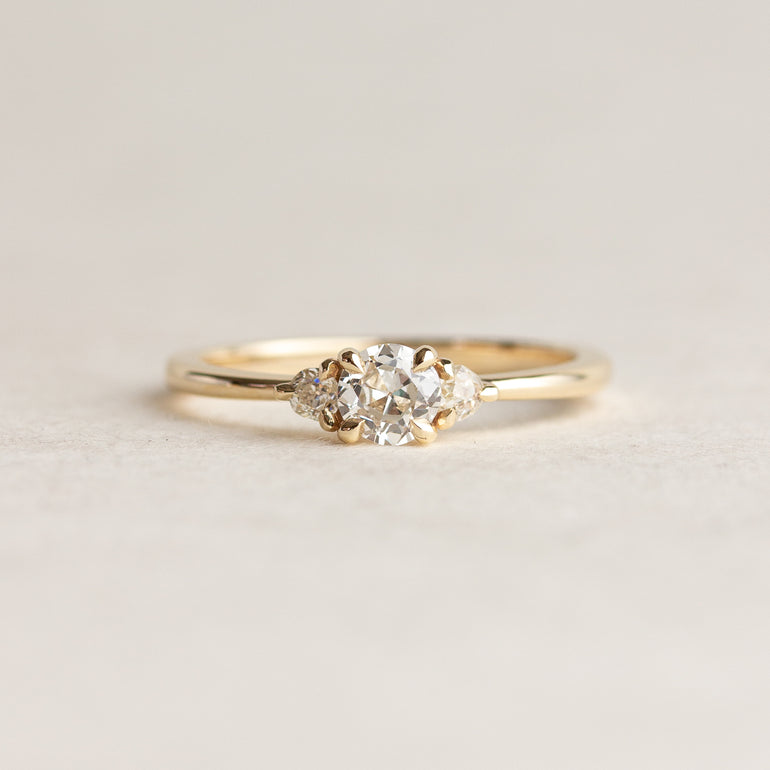 The Bria Ring features three round, brilliant-cut stones to represent your past, present, and future with your beloved. This petite design is perfect for those with a more minimal, no-fuss style, and dainty eagle claw prongs secure the centre stone for a feminine touch.