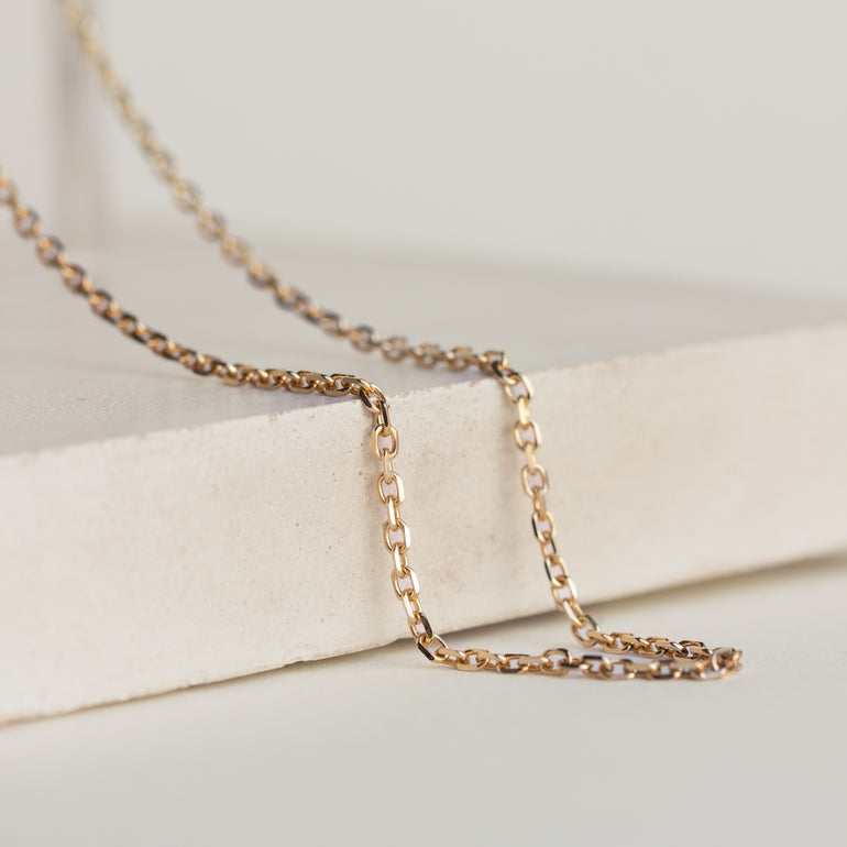 A luxurious, 14K yellow gold biker chain. The square cable links scintillate beautifully in the light—this vintage chain would make the perfect gift this holiday season.