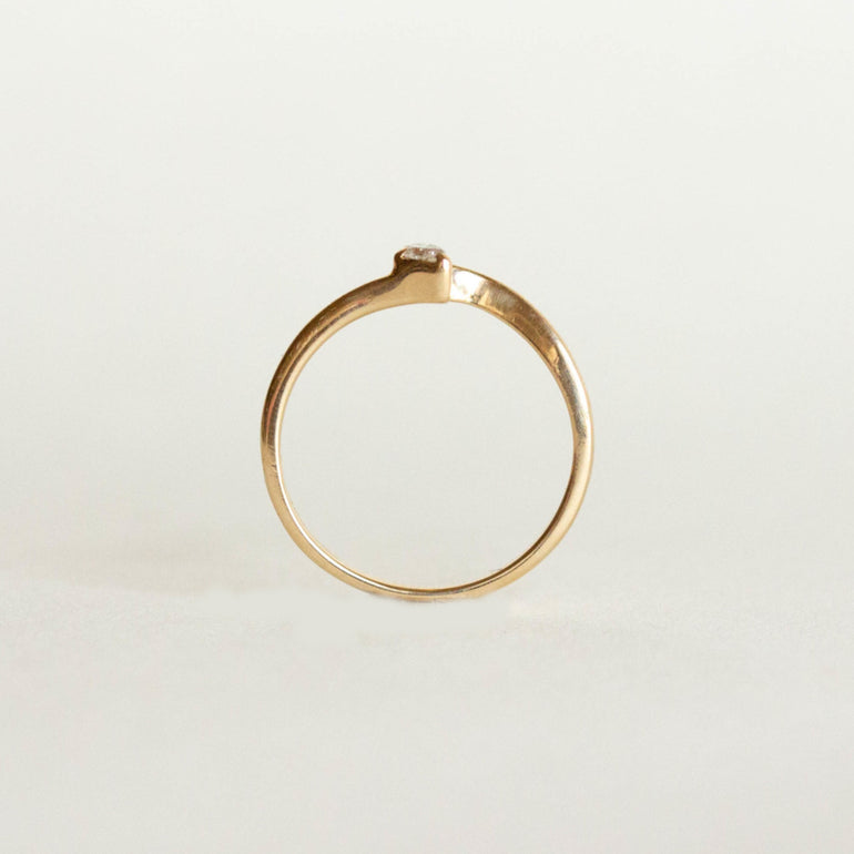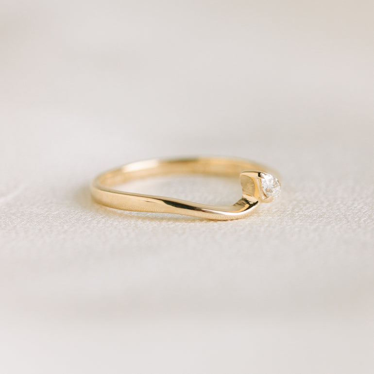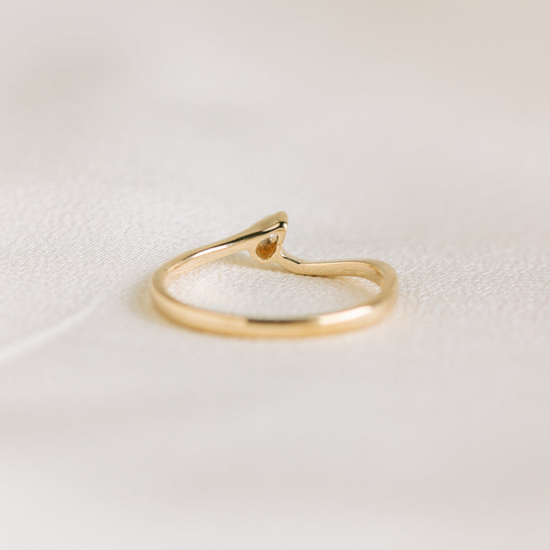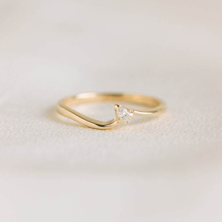 The Brooks is absolutely effortless. The 14k yellow gold band tapers as it sweeps up to a pear cut diamond. At 0.06cts, this stone gives just the right amount of sparkle to the minimal wave ring.