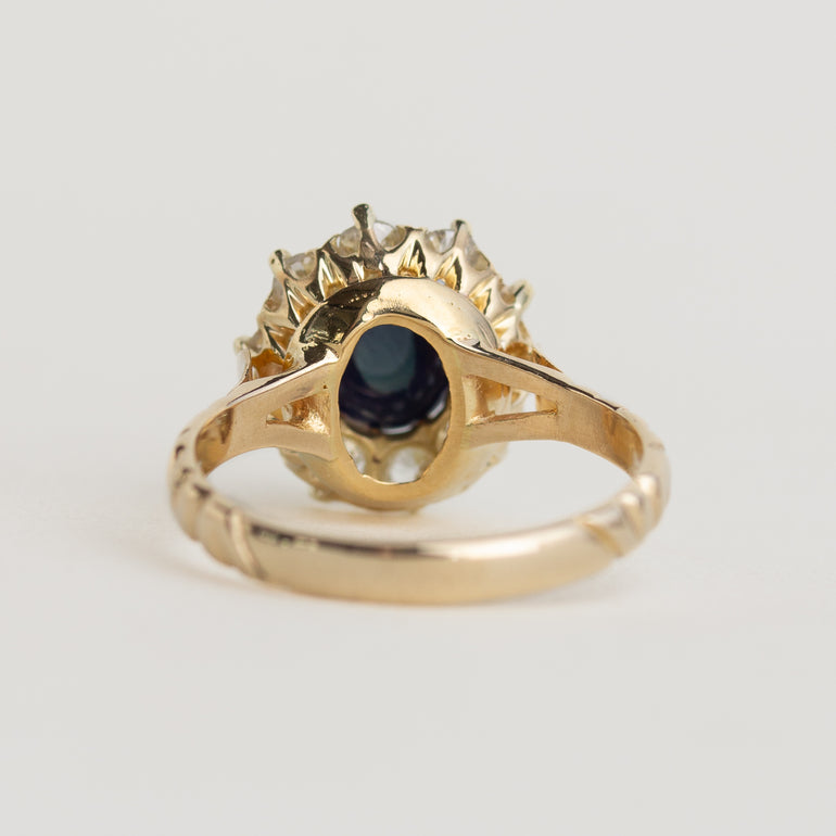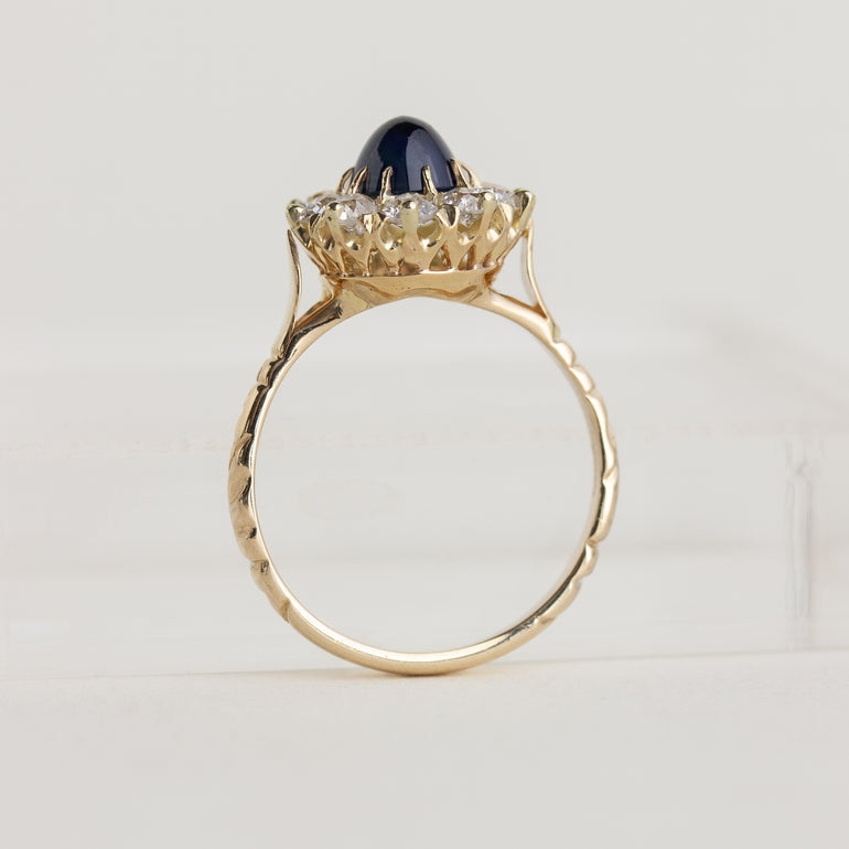 Sapphire Cabochon & Diamond Halo Ring