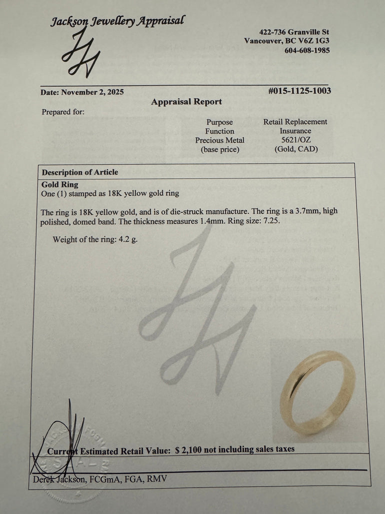 The appraisal of the vintage ring is attached as one of the images; there you will find detailed information about the ring, as well as the appraised value of the ring at $2,100 CAD. The appraisal is included with the purchase of the ring to aid in the insurance process if you choose to insure (which you should!)