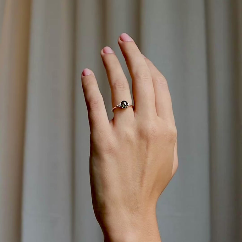 For those with wild, romantic hearts, we designed the Amelia Ring. A unique, rose-cut sapphire nestles between two petite diamonds, enveloped in secure 14K yellow gold—a manifestation of hopeless romance. We love this ring for someone that wants something a little different in their engagement ring, but that loves the look of a classic solitaire.