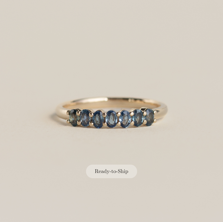 Featuring a series of beautiful oval-cut sapphires, each stone is hand-selected for its blue colour and impeccable clarity. The sapphires are set in a classic prong setting, allowing for maximum light exposure to showcase their deep oceanic beauty.