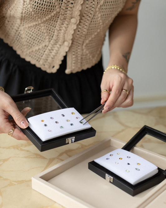 We create pieces for every budget and would love to work with you to source stones aligned with your preferences. Our materials are priced following live market values so you are always guaranteed a fair price. For your piece of mind, we verify the value of all rings over $1,000 with a 3rd-party appraisal. To assist you in caring for your ring we offer a lifetime cleaning and polishing services. Additionally, we offer discounts on future products and services. Please review our warranty policy for more details.