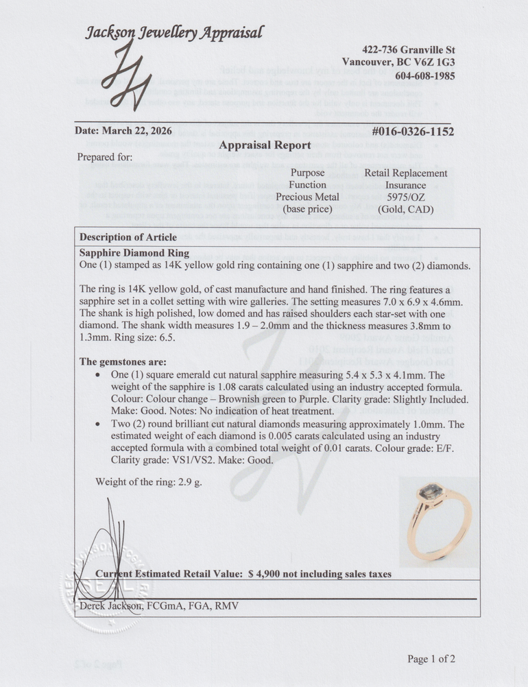 - Stone: Square, Emerald-cut Natural Sapphire