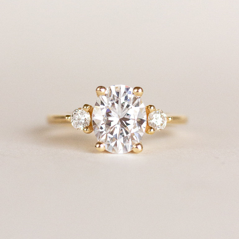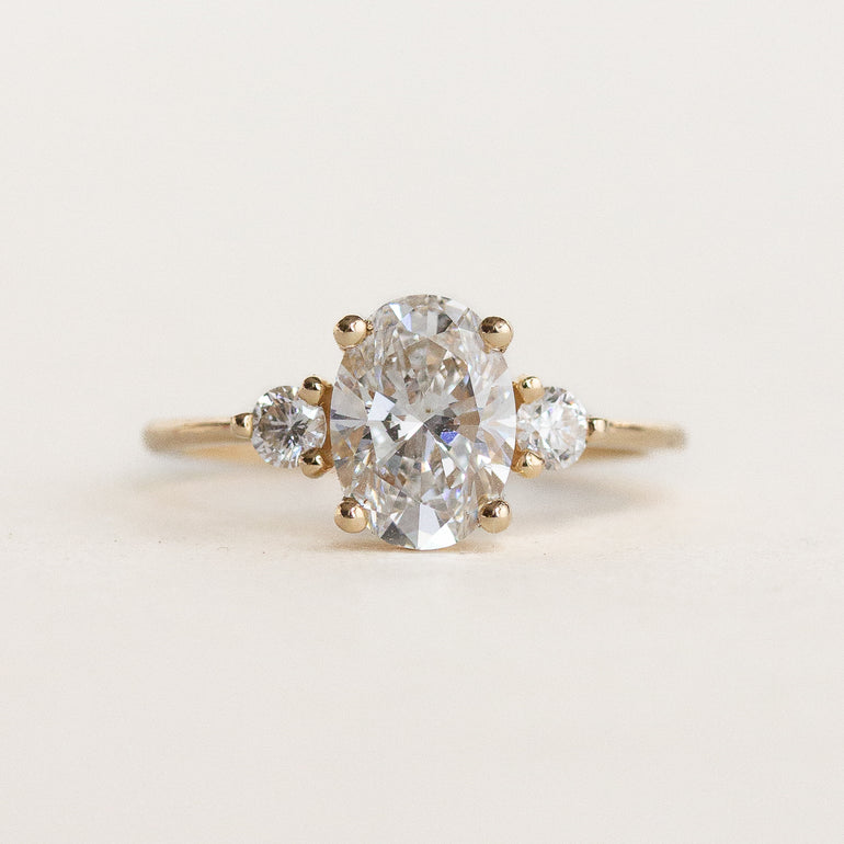 The Adah Ring is a classic in 14K yellow gold. Featuring a beautiful oval cut white sapphire centre stone with diamond accents, this ring is perfect for the fiancé(e) with timeless, unwavering tastes.