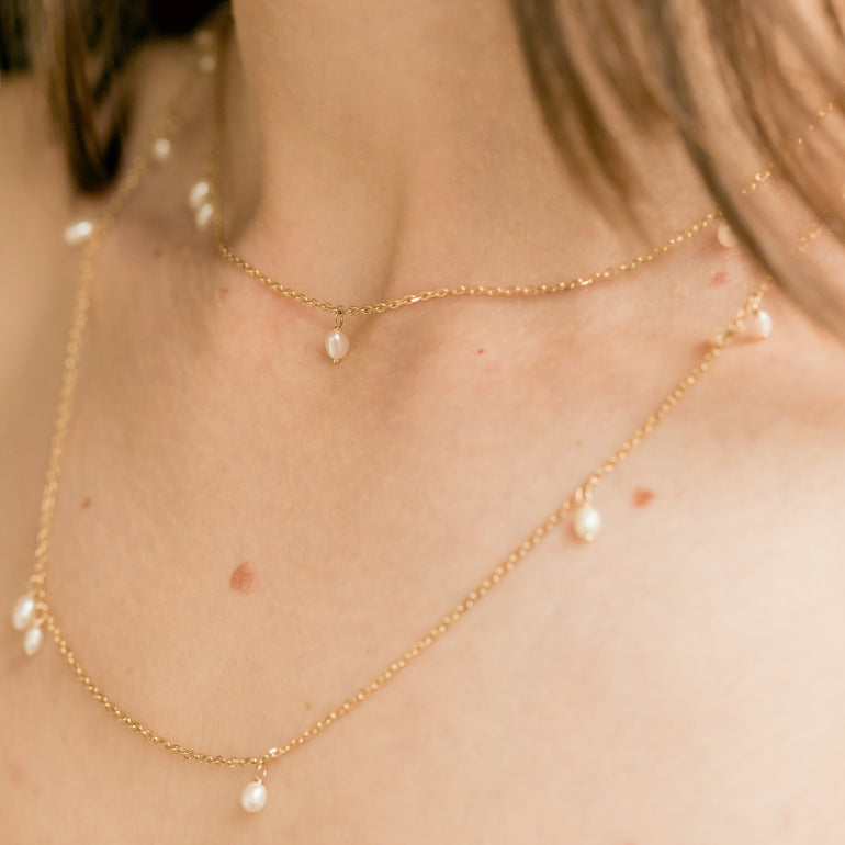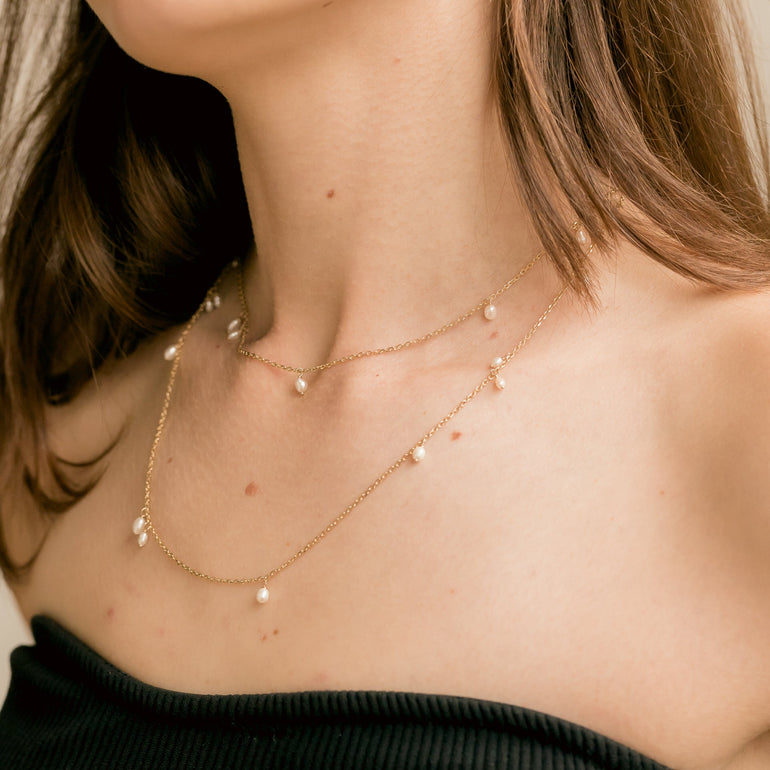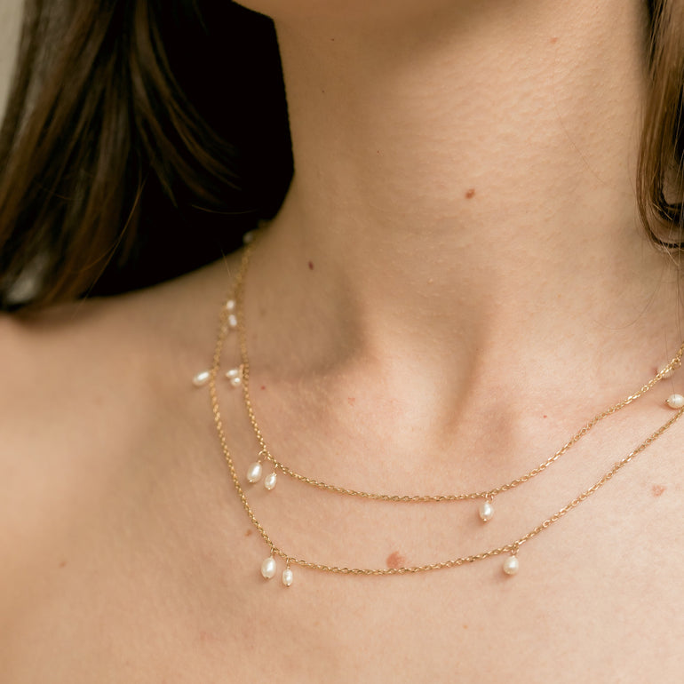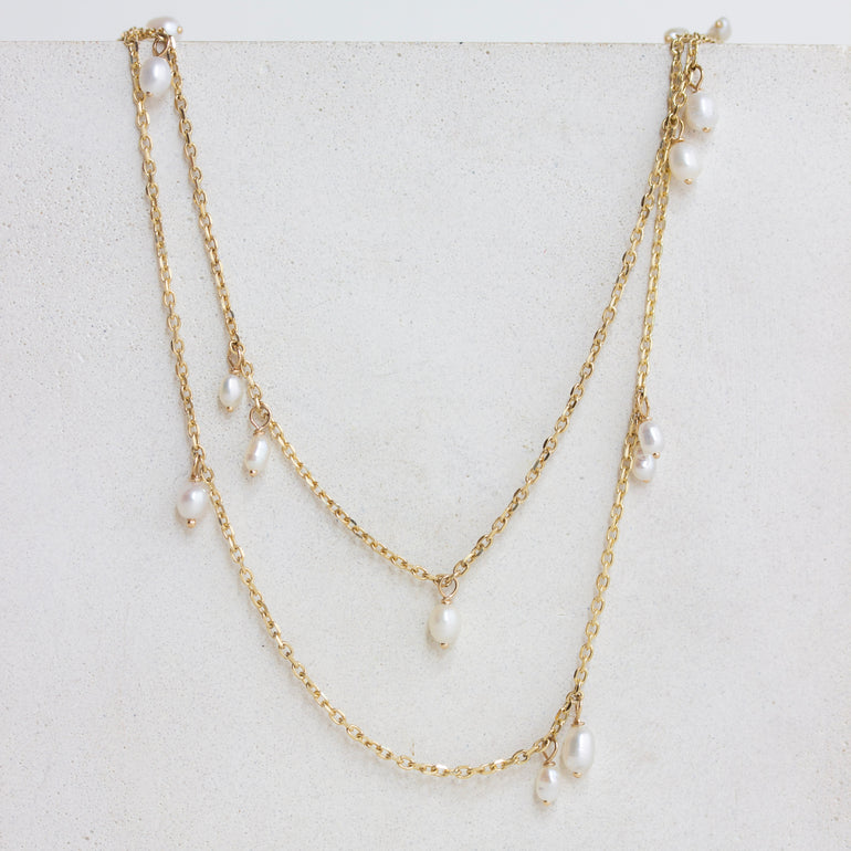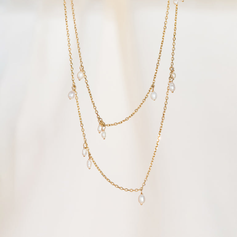 This extra long pearl chain necklace is not only timeless, but incredibly versatile. Wear it long, doubled up, or even draped delicately down your back for a night out.