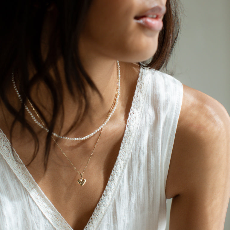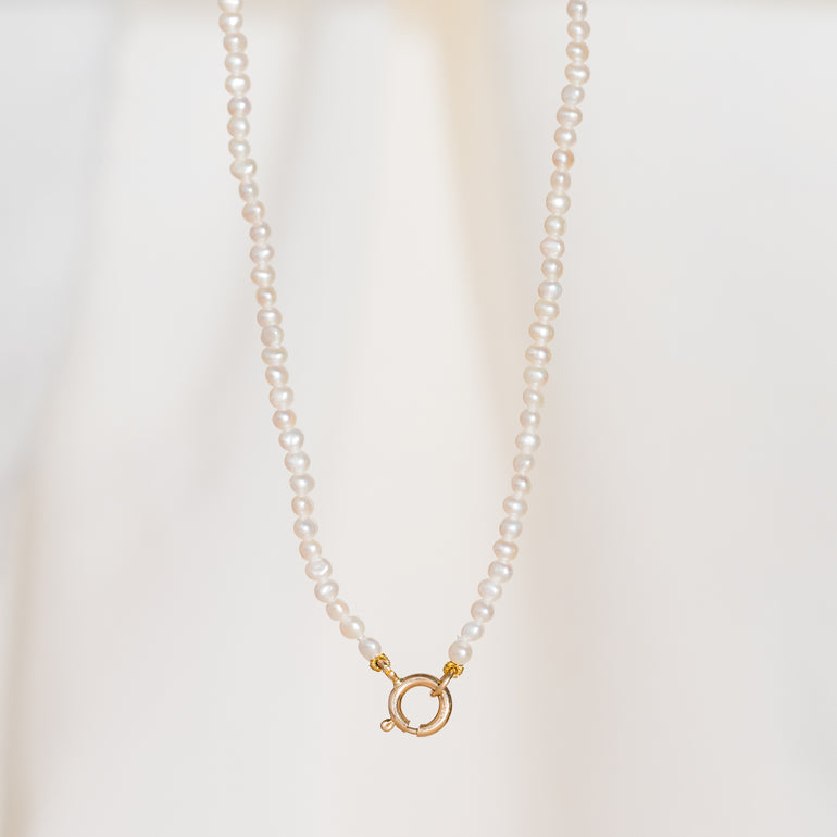 For our hopeless romantics, a delicate strand of petite pearls is all you need. A sturdy 14K gold clasp is the perfect size to slip on your favourite charm or pendant.