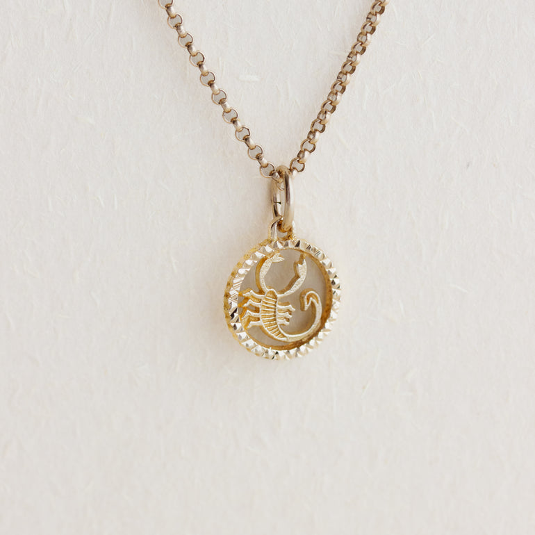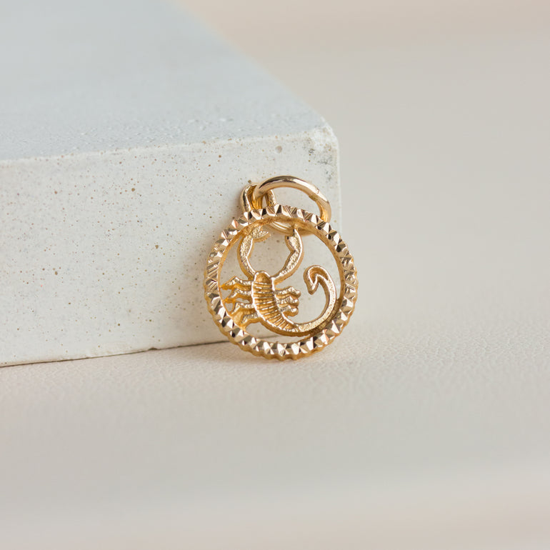 A vintage scorpio Zodiac charm, crafted in solid 10K yellow gold.
