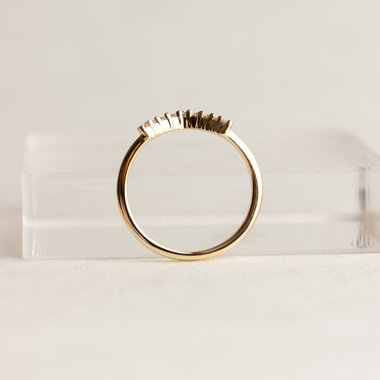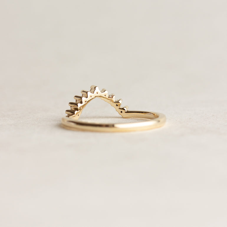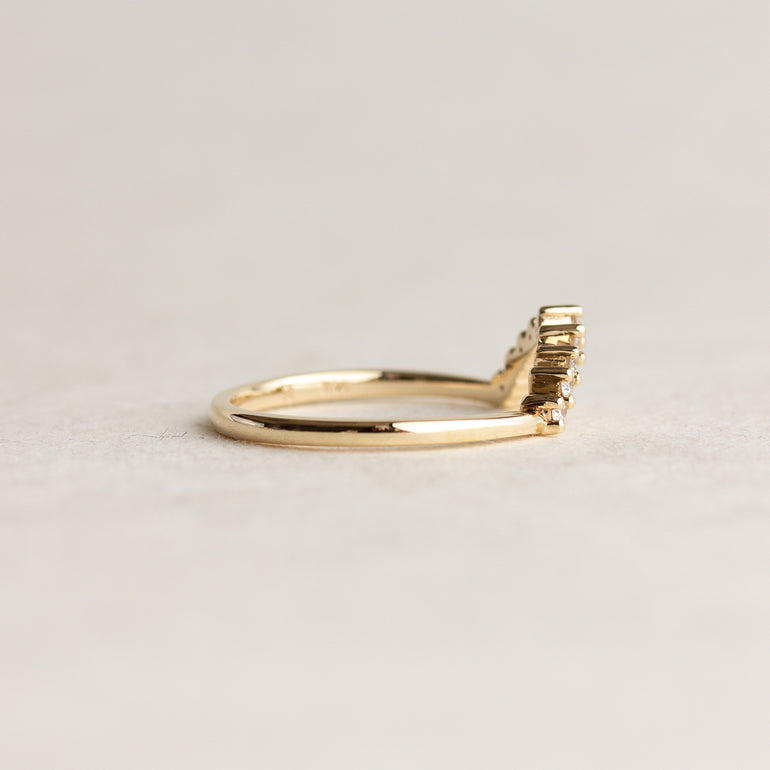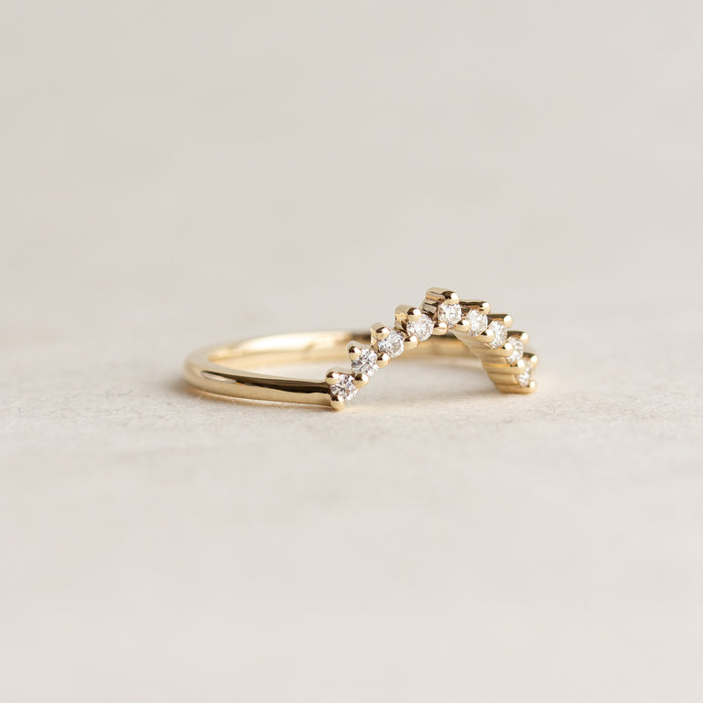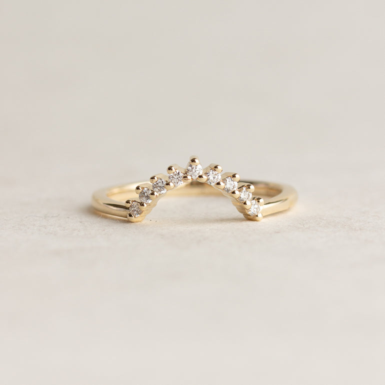 This delicate contour band adds a vintage-inspired flare to any engagement ring. Each 1.5mm diamond is set in a vintage floral design, creating a half-halo. Whether your ring already has a halo, or you are looking to add a little extra sparkle, the Victoria Band is a stunning solution.